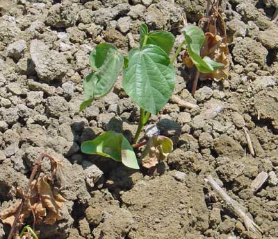 Race 4 of the Fusarium wilt pathogen (Fusarium oxysporum f. sp. vasinfectum) is impacting cotton production in California, particularly for Pima cottons. Symptoms on young plants include chlorosis and necrosis of cotyledons (center) and seedling death (left and right). Management for the disease will include breeding for resistance.