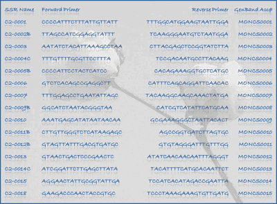 SSR Primer sequences with GenBank accession numbers for the clone sequences and ESTs from which primers were designed.