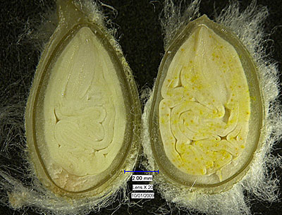 Gland development in glanded and glandless Stoneville test entries 50 days after flowering.
