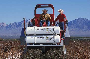 Operation of an experimental thermal defoliator for cotton. (USDA-ARS photo by Peggy Greb)