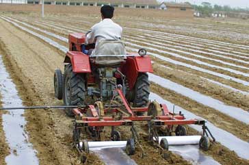 Labor-intensive cotton production in China uses plastic mulch, which increases soil temperature and allows earlier planting.